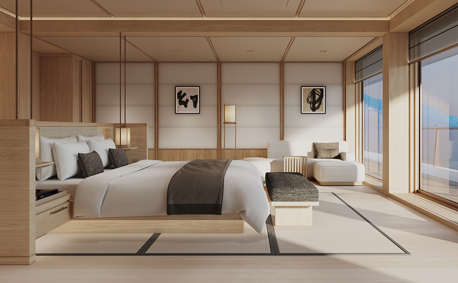 Soaring 2.3-metre ceilings, full-height windows and expansive, private terraces blur the boundary between interior and sea, inviting stillness and ease. Each suite is complete with spa-style bathrooms, discreet technology and the quiet presence of a dedicated Host.
